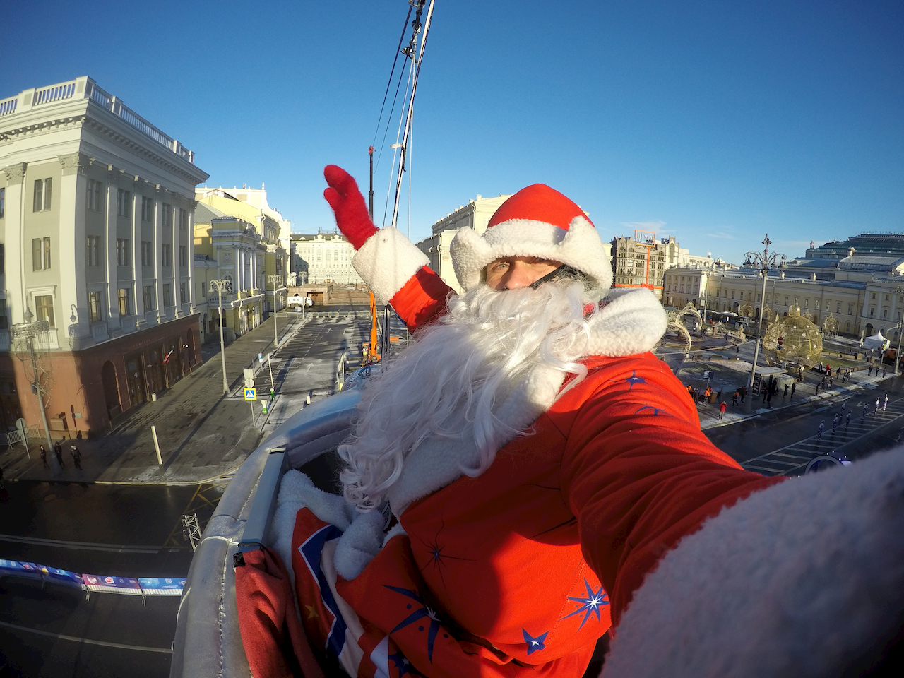 Компания “Московские сезоны” привлекает нас в качестве экспертов и организаторов нестандартных проектов, требующих творческого подхода и высокой степени безопасности. Одним из таких проектов была Ракета на новый год 2019 1020 перед большим театром. Нам была поставлена задача: ЧТО непрерывно на протяжении 3х суток ракета должна летать в пространстве на уровне 6 этажа, над людьми гуляющими по театральному проезду. В ракете должен находиться актер, имеющий допуск на высотные работы в костюме деда мороза и поздравлять всех с новым годом! Командой «дедов морозов», среди которых была даже одна девушка, поставленная задача была выполнена с соблюдением всех требований и норм безопасности.