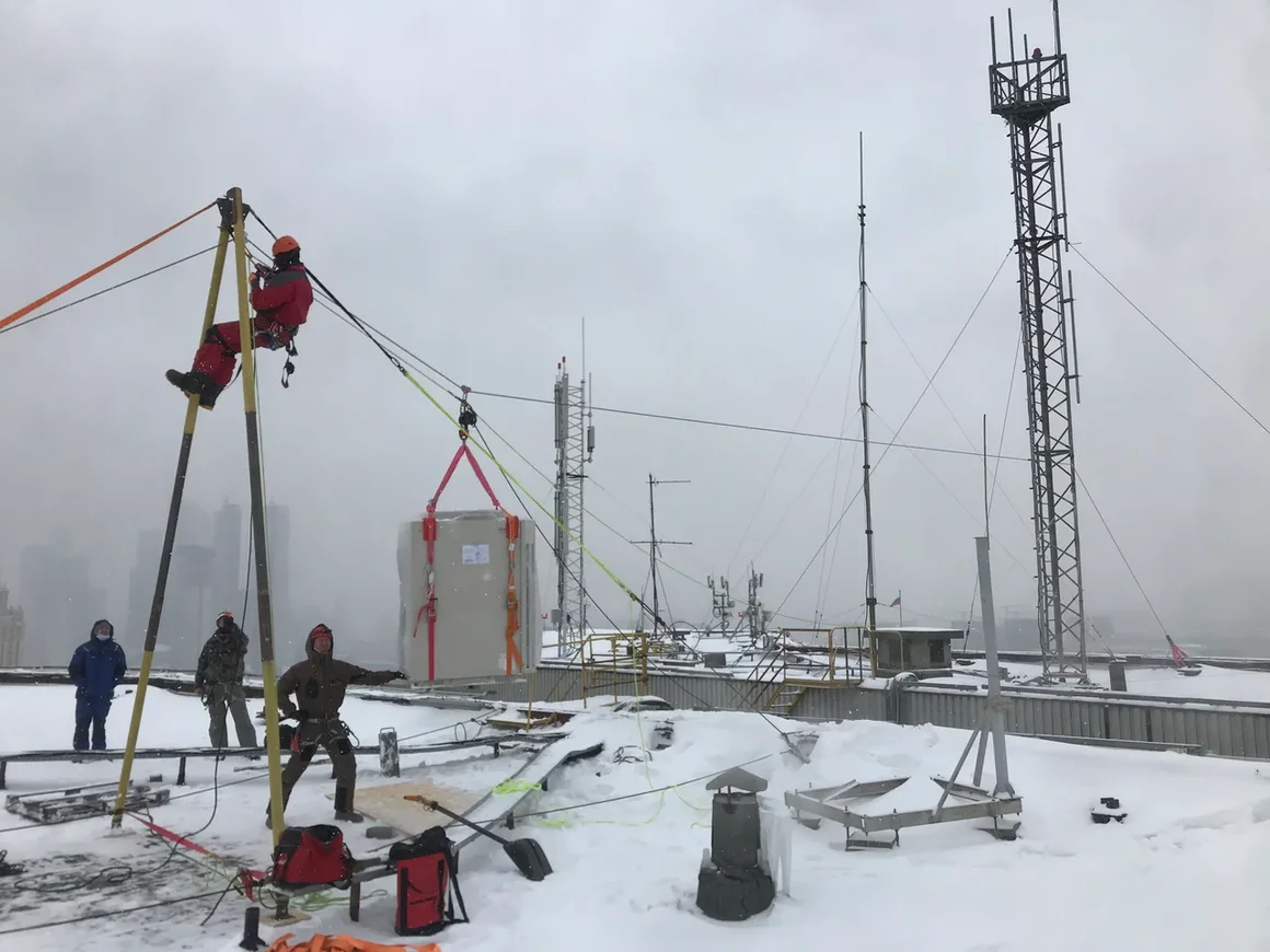 Работа была нестандартная, интересная, на крыше устанавливали шевру, и организовывали переправу из стального троса, вес одной установки составлял 300 килограммов.
