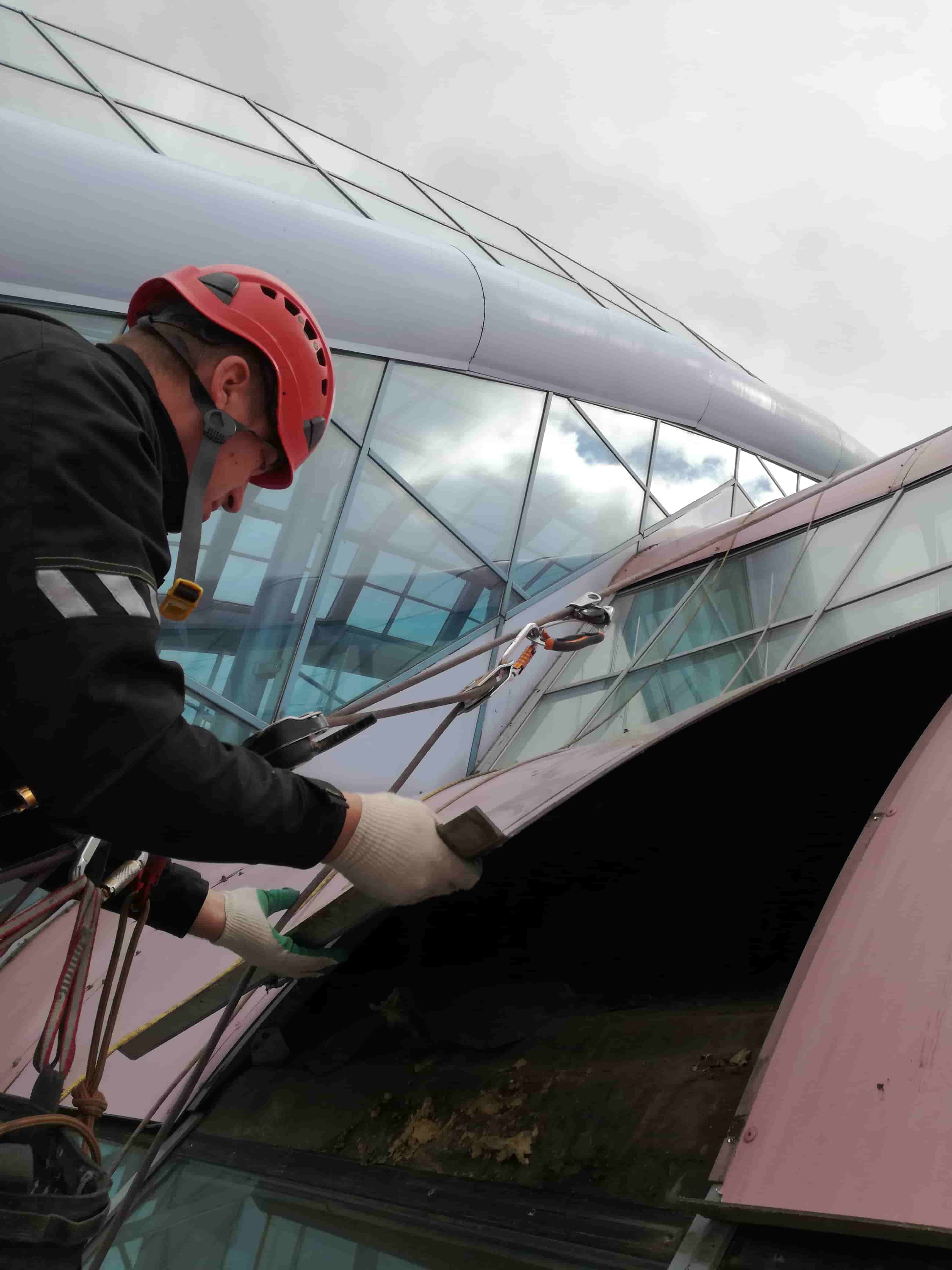 Наши альпинисты способны выполнить монтаж стеклопакетов любой сложности. Стекло – тяжелый, хрупкий и опасный груз, который необходимо максимально осторожно доставить к месту и установить в проем. Для этого мы располагаем всем необходимым альпинистским снаряжением, специальным инструментом, в том числе профессиональными присосками для стекла и многим другим.