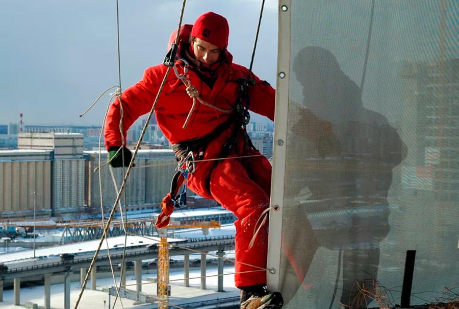 Монтаж фальшфасада выполняется с использованием методов альпинизма, что позволяет осуществлять работы на высоте без необходимости в установке лесов или подъемных конструкций. Это обеспечивает более быстрое и эффективное выполнение задачи, минимизируя необходимость в установке временных конструкций и снижая затраты.