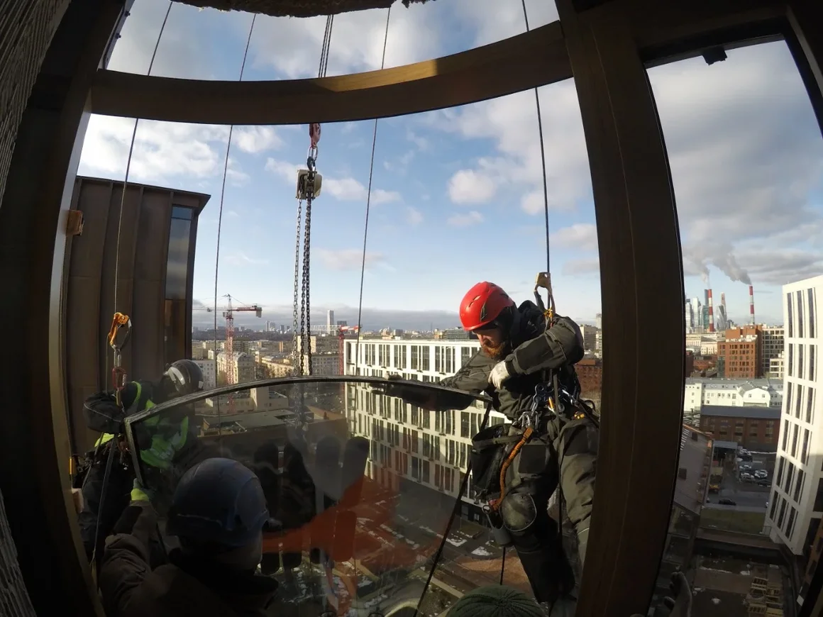 Монтаж несущих конструкций осуществляется изнутри, но монтаж стеклопакетов возможен только со стороны улицы, что представляет серьезную проблему даже на втором этаже, не говоря уже про работу на высоте. С этой задачей не смогут справиться обычные стекольщики, устанавливающие металлопластиковые окна. Фасадное остекление – зона ответственности промышленных альпинистов.