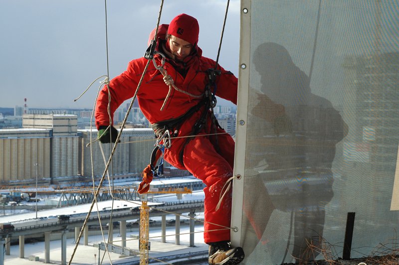 Все работы по установке баннера выполняются с использованием качественных метизов и монтажного оборудования. Наши промальпинисты используют сертифицированное такелажное и альпинистское снаряжение, выдерживающее требуемые нагрузки. В работе мы строго придерживаемся Правил техники безопасности и инструкций по охране труда при работе на высоте.