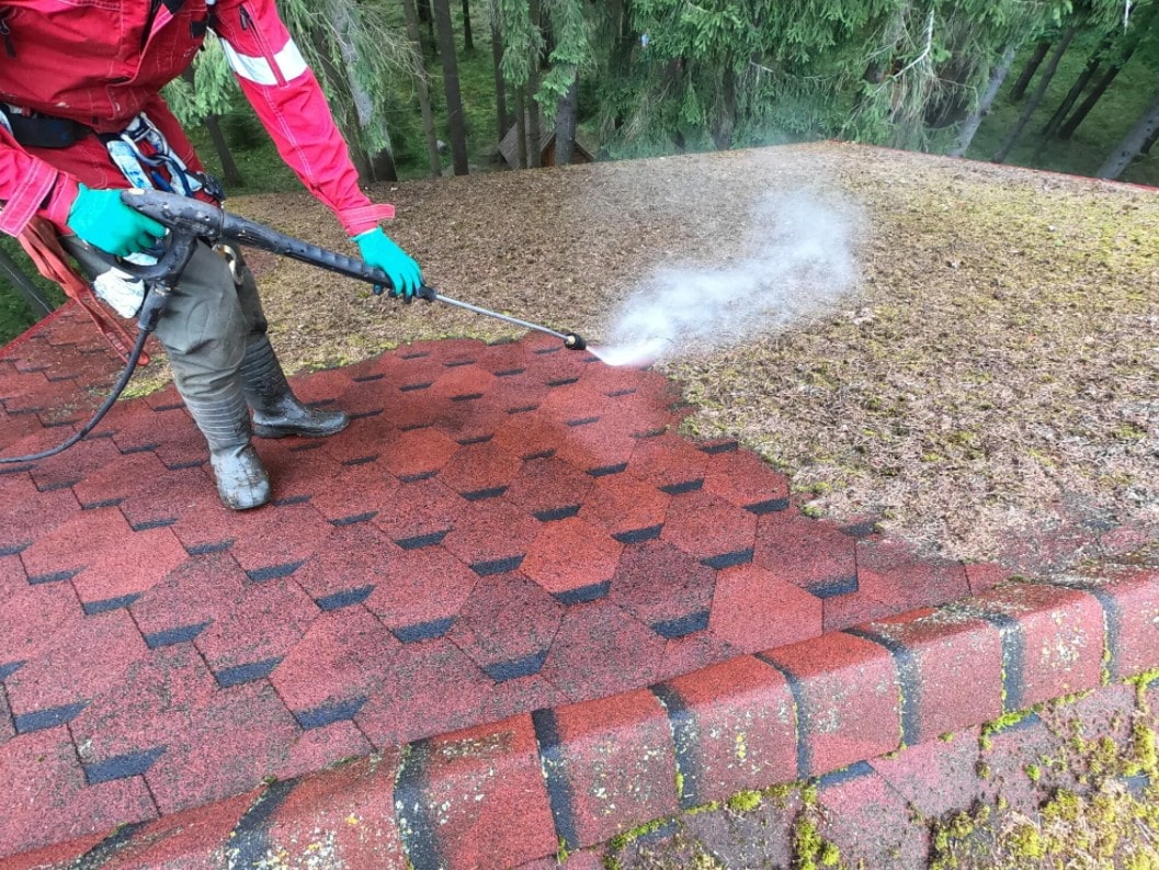 Очистка крыши от мха и лишайника включает: