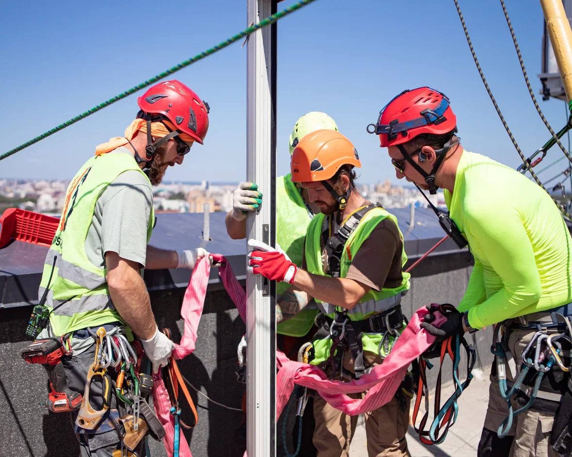 В 50% случаев точную цену, без осмотра, назвать сложно, так как в высотных работах много нюансов, начиная от особенностей архитектуры здания, точек крепления на кровле или сооружении, заканчивая “изюминками” прилегающей территории.